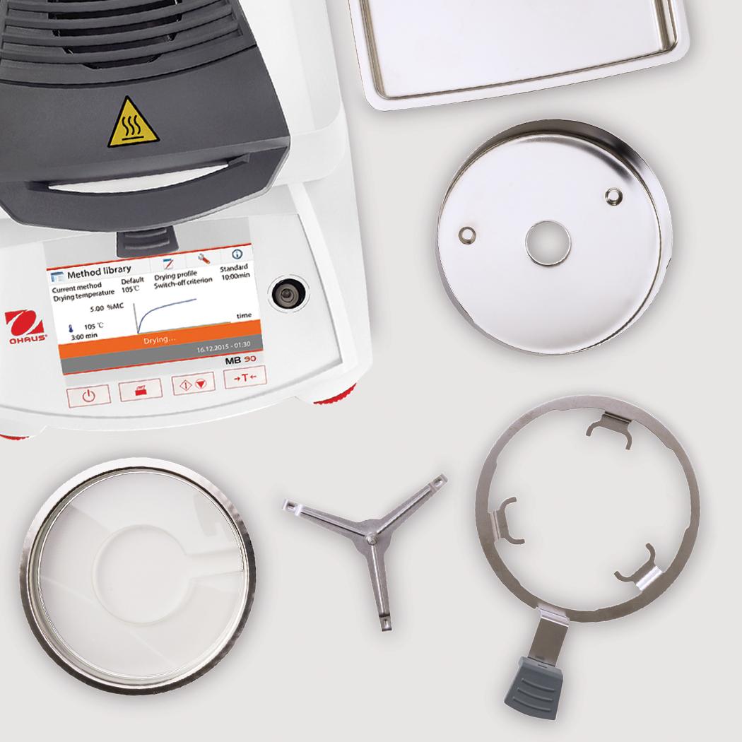Measuring moisture content has never been easier than with the MB90 Moisture Analyzer. The MB90's halogen heating distributes heat uniformly over the sample and speeds up the drying process, delivering fast and precise measurements. Designed for tool-free cleaning, its components can be easily removed for quick and easy maintenance. Operating the MB90 is intuitive with the icon-driven menu navigation on the touchscreen display.