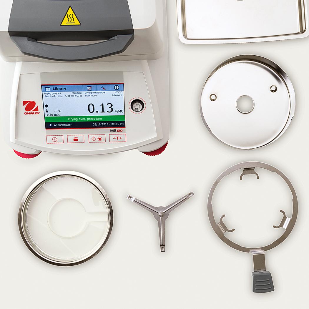 The MB120 delivers functionality and precision that you can rely on, and is easy to operate and clean – you can test more samples in less time! Advanced features such as a temperature guide help to analyze optimum drying temperature, and methods and results storage allows statistical analysis of measurements. Three levels of user management ensure data safety - set up and lock temperature settings and method parameters with administrator access.