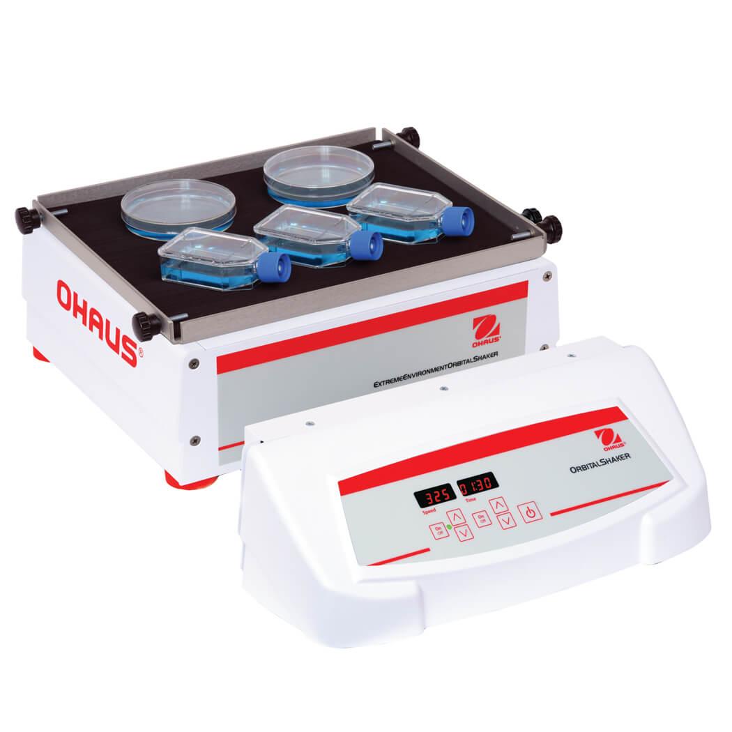 Ideal for applications that require CO2 and humidity for optimal cell growth, our Extreme Environment Shakers are designed for use in extreme environments such as CO2 incubators. A remote controller (that magnetically attaches to the outside of most incubators) allows for external control of settings, and the shaker base is placed inside of the incubator. Microprocessor control ensures consistent shaking while safely ramping to the set speed.