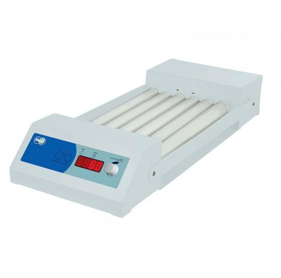 Rotary shaker for test tubes suitable for mixing different sized tubes via a “tumbling” motion and “rolling” motion